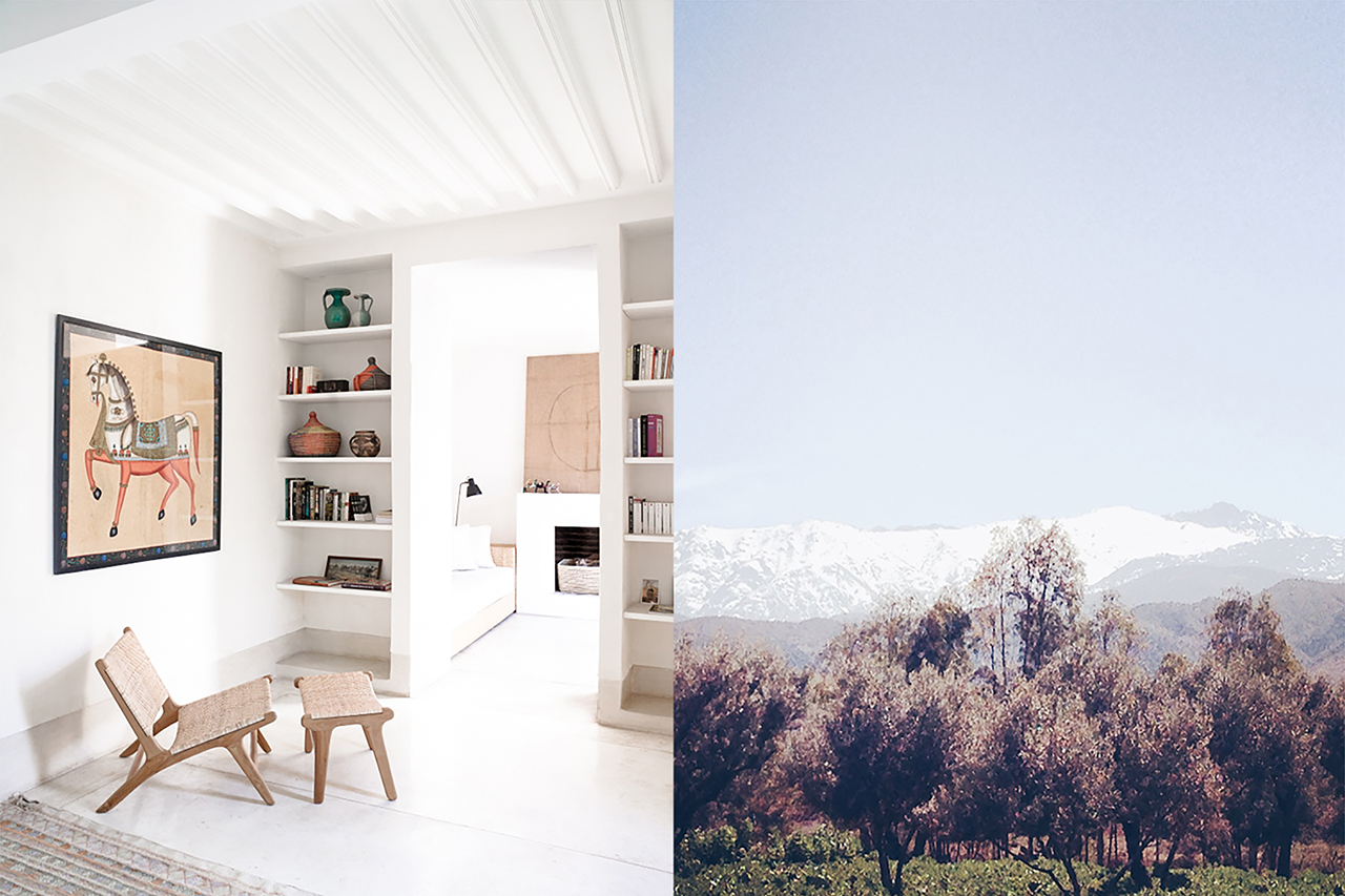 Just forty-five minutes away in the Ourika Valley is the Riad Mena & Beyond country outpost, a two-acre permaculture farm situated at the foot of the Atlas Mountains. Whilst Riad Mena is the luxurious, creative city-stay, capturing the inspiring and international essence of Marrakech, the farm is the counterbalance to this, allowing guests to spend the day or some nights away from the bustle of the city. Simple yet beautiful accommodation, a twenty meter natural pool to swim in whilst surrounded by incredible views of the Atlas Mountains, yoga on the terrace with our visiting practitioners and freshly prepared seasonal picnics eaten amongst the hundreds of olive trees, all come together to create a wonderfully grounding and peaceful experience, such a short trip from Marrakech.